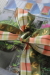ゴールドの木の葉がプリントされ、季節感あふれるチェックリボンは秋冬ならではの一品です。