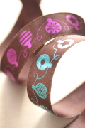 ブラウンをベースに、メタリックブルー、そしてメタリックフューシャピンク。