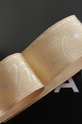 ゴールドの下地にシルバーでフランス語がプリントされ、