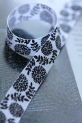 モノトーンのフラワーモチーフがおしゃれなグログランリボン。