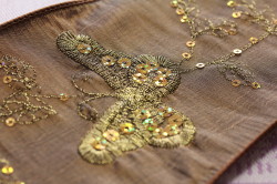 蝶をモチーフにデザインされた刺繍が奏でる美しさには