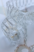 シルバーのラメ糸がレースのように丁寧に編み込まれ、エレガントな美しさを表現。